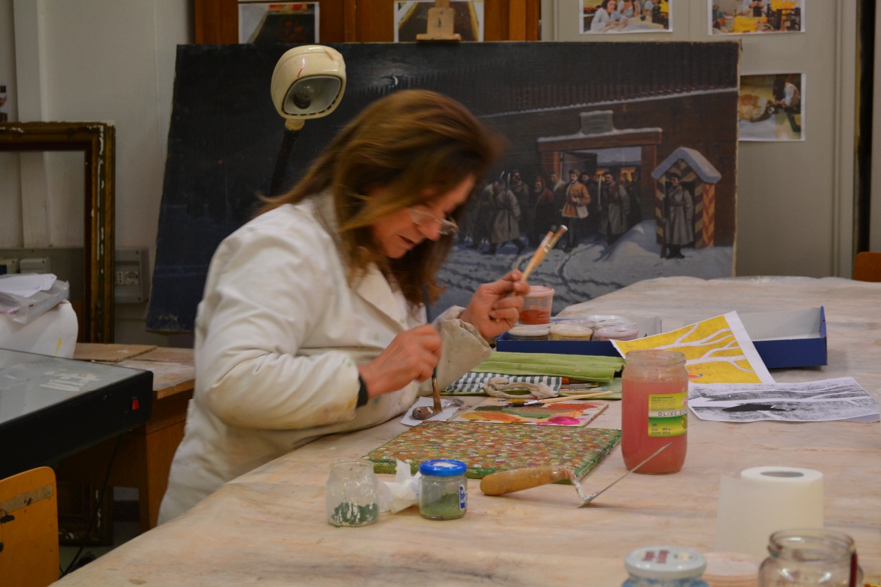 Lezione di affresco: Docente e allievi a lavoro